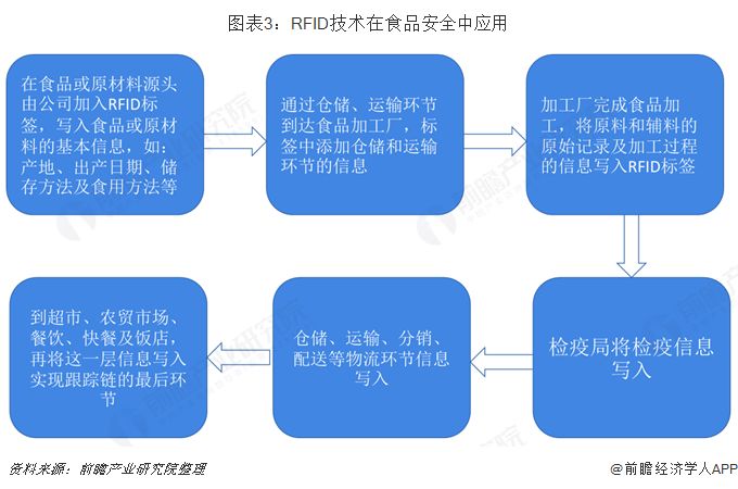 将RFID技术应用于食品安全,首先能建立准确、完整的食品供应链信息。RFID技术凭借其无线传输特性与物品标识的惟一性和安全性,在标签上能覆盖食品供应链全过程的所有信息数据,完成了100%追溯食品来源的解决方案,可以回答消费者关于“食品从哪里来,中间处理环节是否完善”等问题,并给出详细可靠的答案。RFID的解决方案对每一件物品提供高效、详尽的控制,在从农场到消费者餐桌的整个食品供应链中,创建一系列可靠的食品信息。至此,RFID技术的应用可以完成两大食品安全管理目标:食品安全“源头”追溯和食品供应链透明化管理。