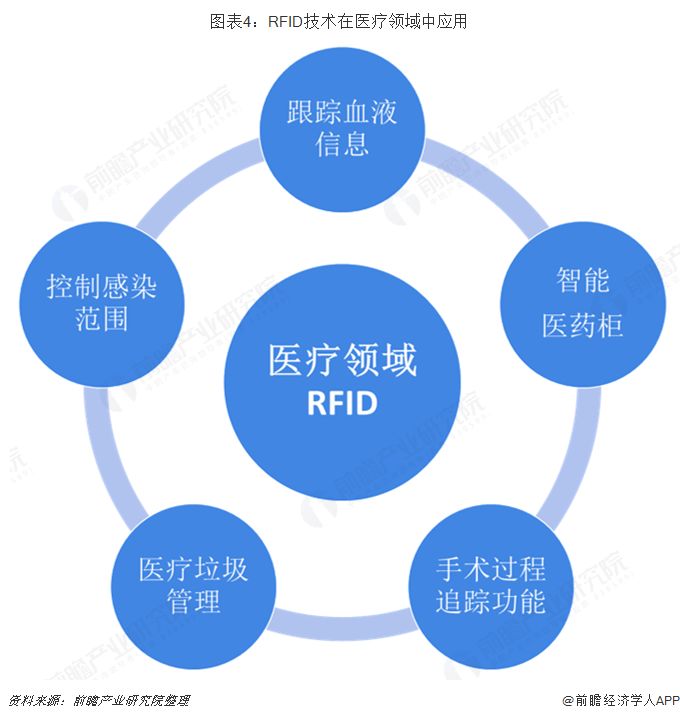 由于医疗信息与科技的全球化发展,医疗院所如何以最快的速度导入资通讯科技,以满足医疗照护市场的需求,并提升整体医疗质量,进而发展新兴产业提升获利能力,已成为各个医疗院所努力的方向, RFID就是其中最重要的技术之一。透过主/被动式RFID集成RTLS实时定位追踪技术,可提供管理或医护人员最精确、最实时的人、事、物的位置及医疗信息。RFID除了可应用于病患及医护人员、仪器资产追踪之外,还可延伸应用到医疗院所的手术流程管理、医药检体或药品管理、气送筒管理、临床照护管理、医疗护送管理等,可有效解决医疗人力及资源浪费、加速医疗流程、降低医疗疏失,彻底提升医疗效率,提高病患安全。RFID被应用在医疗的多个环节中,最急迫的应用当属传染性疾病患者追踪,其次用药安全则是许多医院认为最可行也最具效益的关键应用。